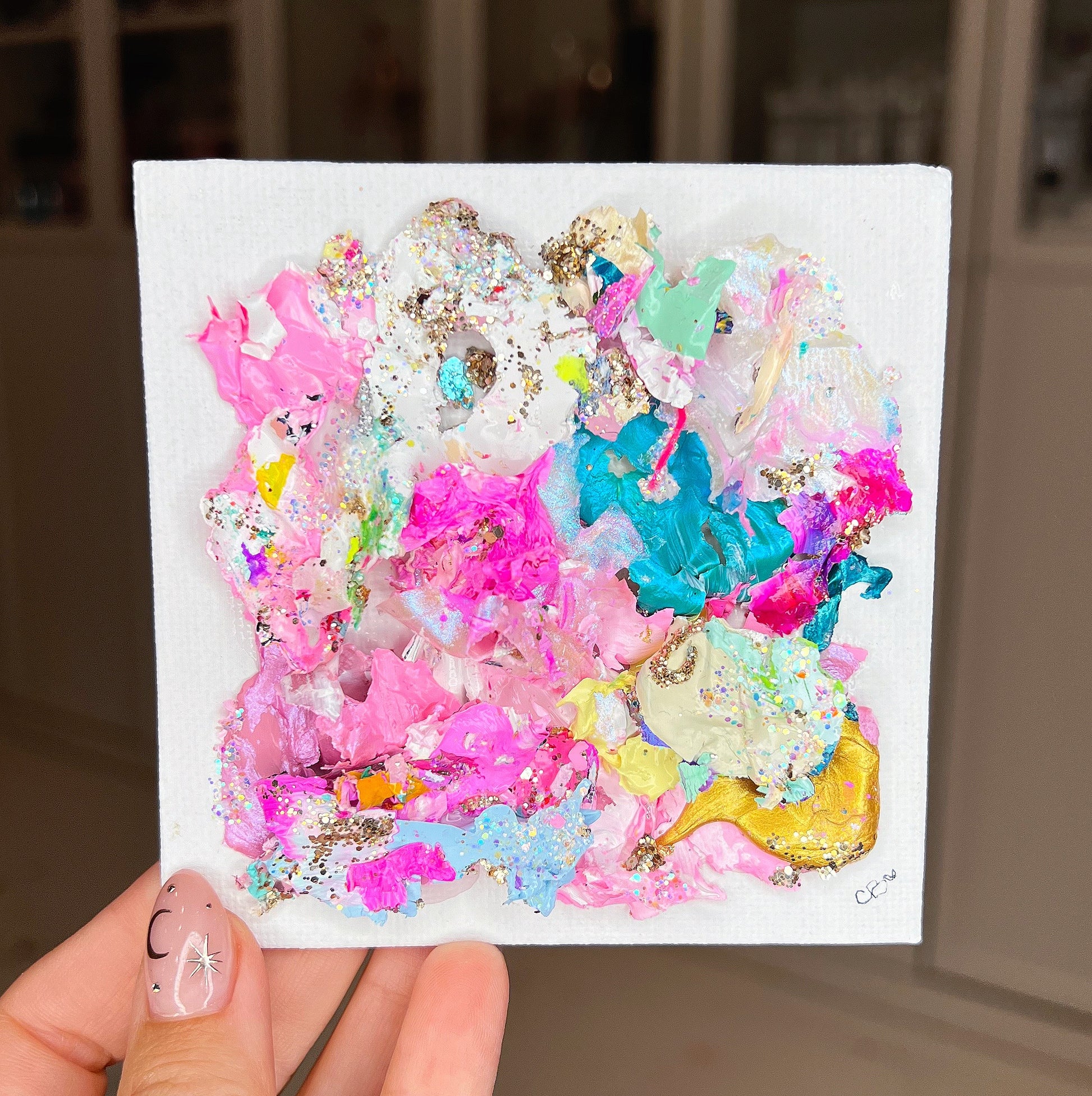 After each large original painting I paint I save the paint that was dried on my pallet and reuse it for this piece of art! Not a bit of paint goes to waste at Chels Made!!
