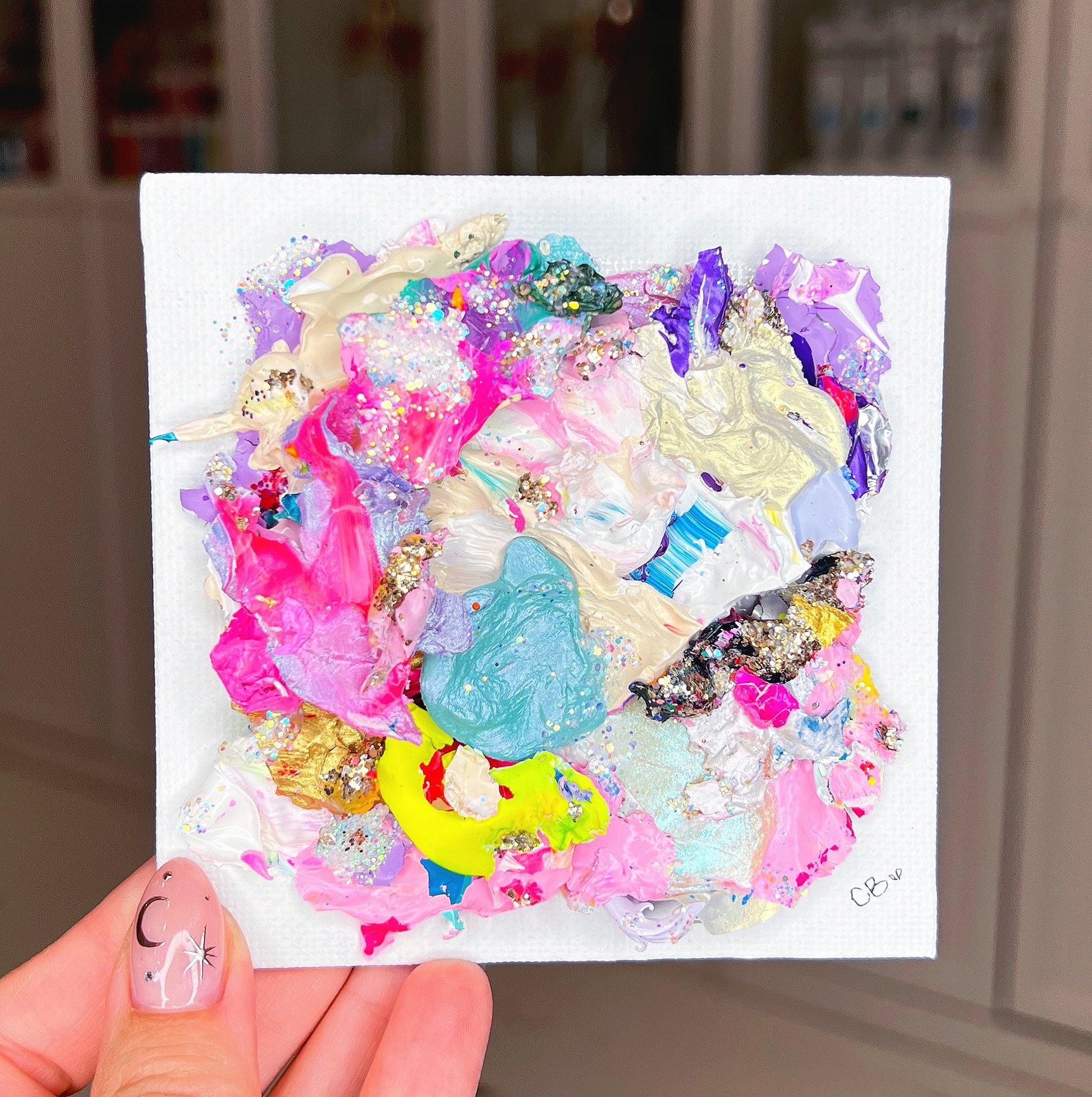 After each original painting I paint I save the paint that was dried on my pallet and reuse it for this piece of art! Not a bit of paint goes to waste at Chels Made!!