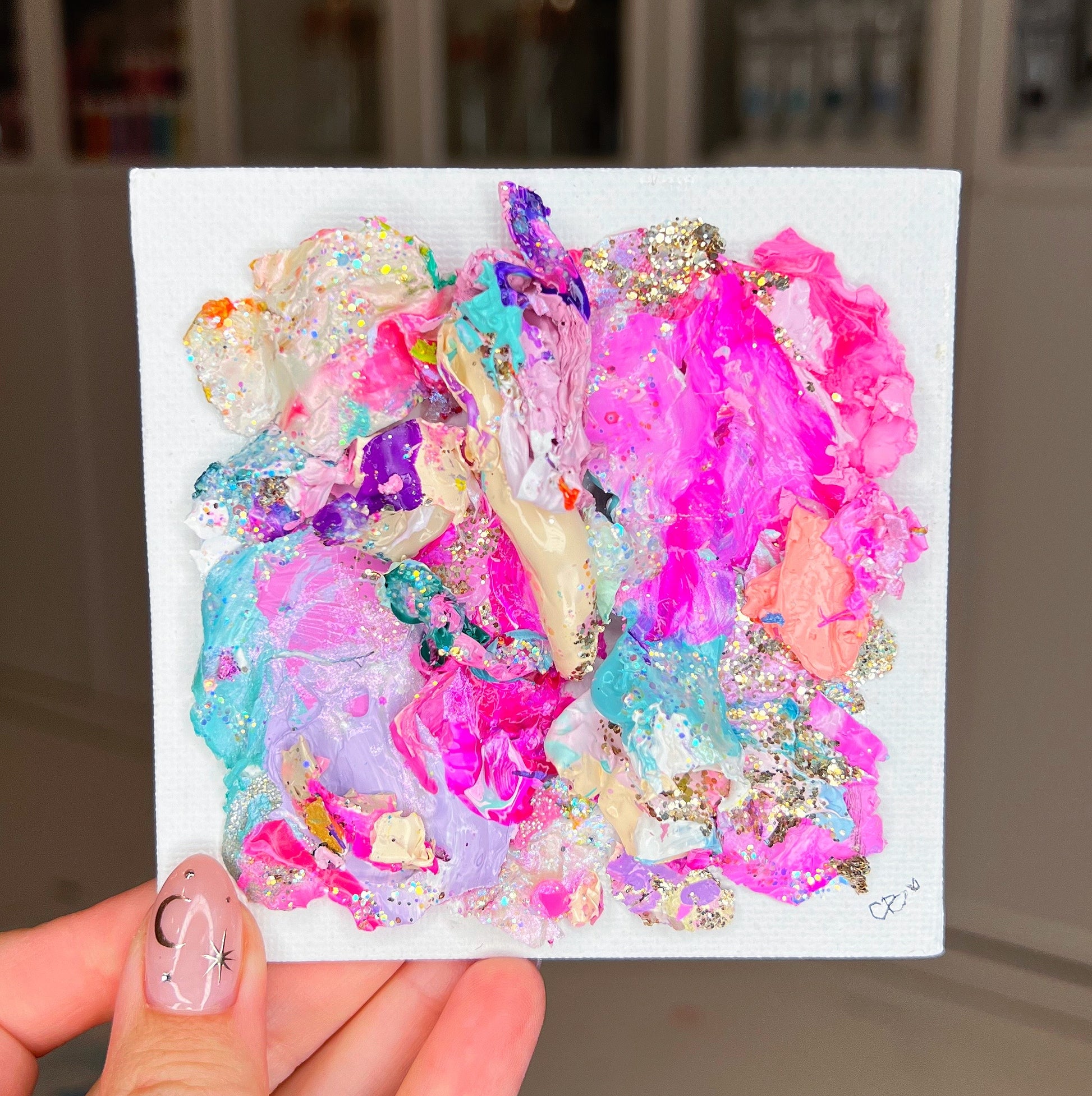 After each original painting I paint I save the paint that was dried on my pallet and reuse it for this piece of art! Not a bit of paint goes to waste at Chels Made!!