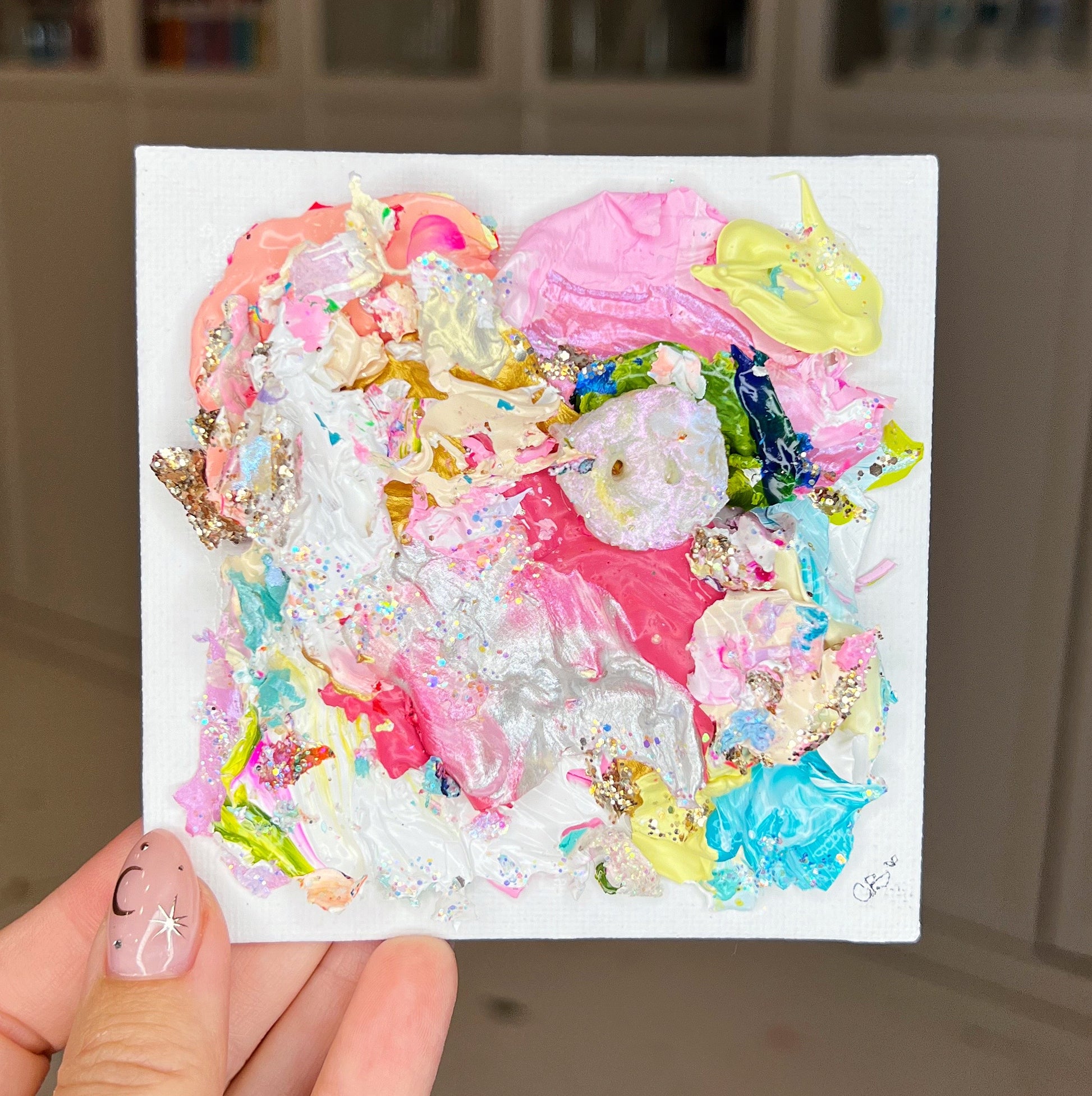 After each original painting I paint I save the paint that was dried on my pallet and reuse it for this piece of art! Not a bit of paint goes to waste at Chels Made!!