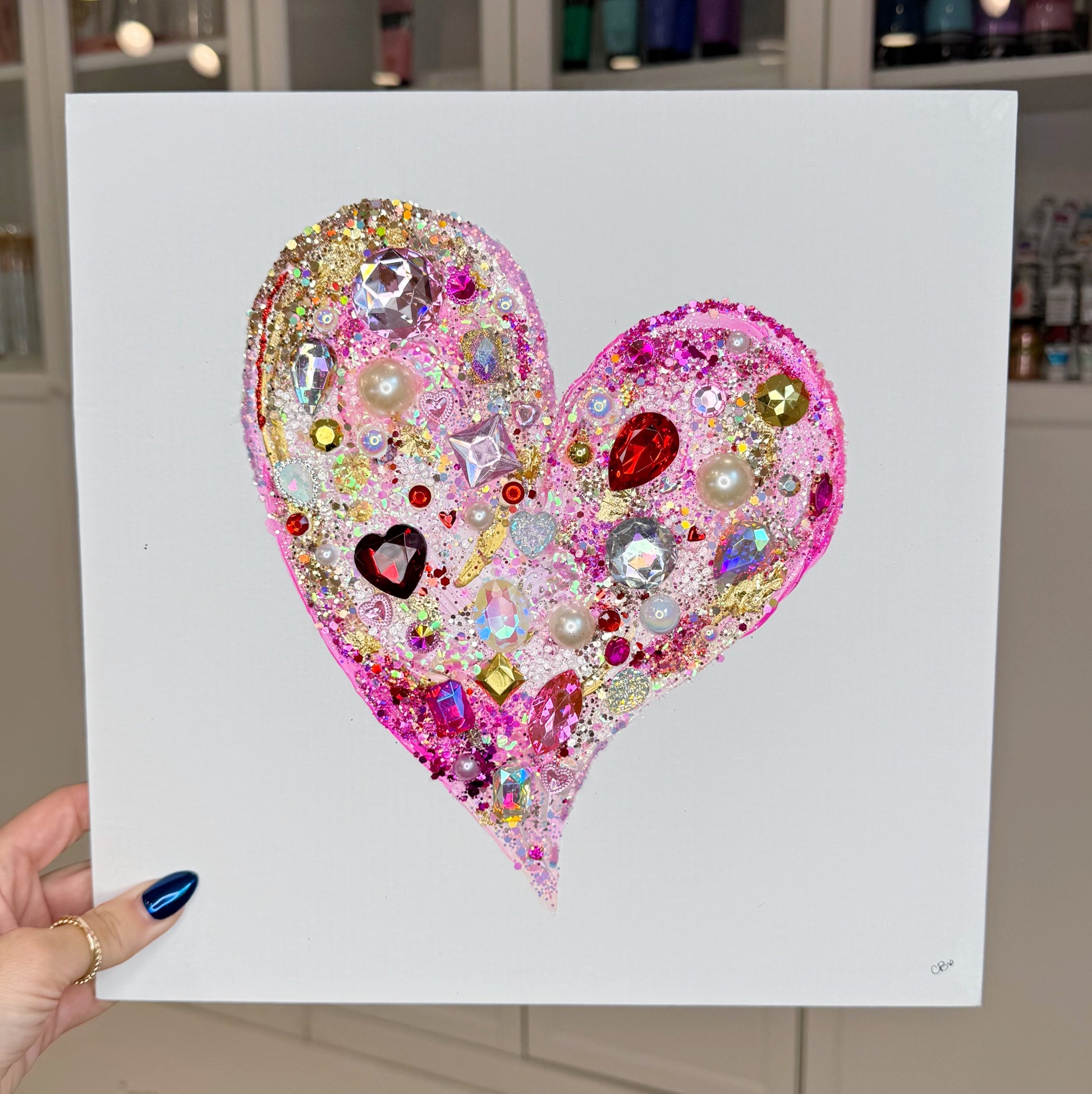 Say hello to our bedazzled one of a kind Valentine Hearts!! Each one is made with acrylic paint, glitter, jewels and a whole lotta love! Don’t miss your favorite!!
