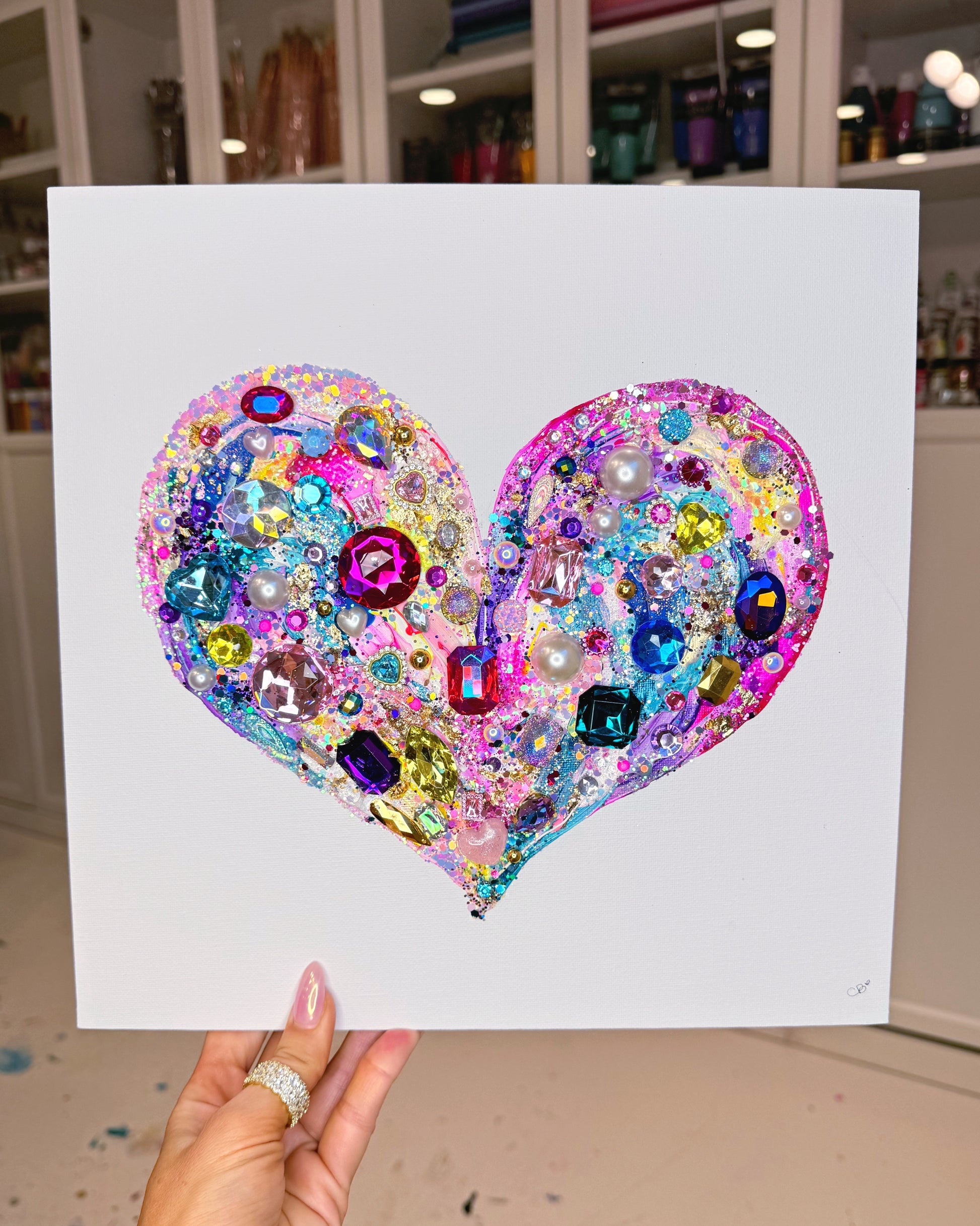 Say hello to our bedazzled one of a kind Valentine Hearts!! Each one is made with acrylic paint, glitter, jewels and a whole lotta love! Don’t miss your favorite!!
