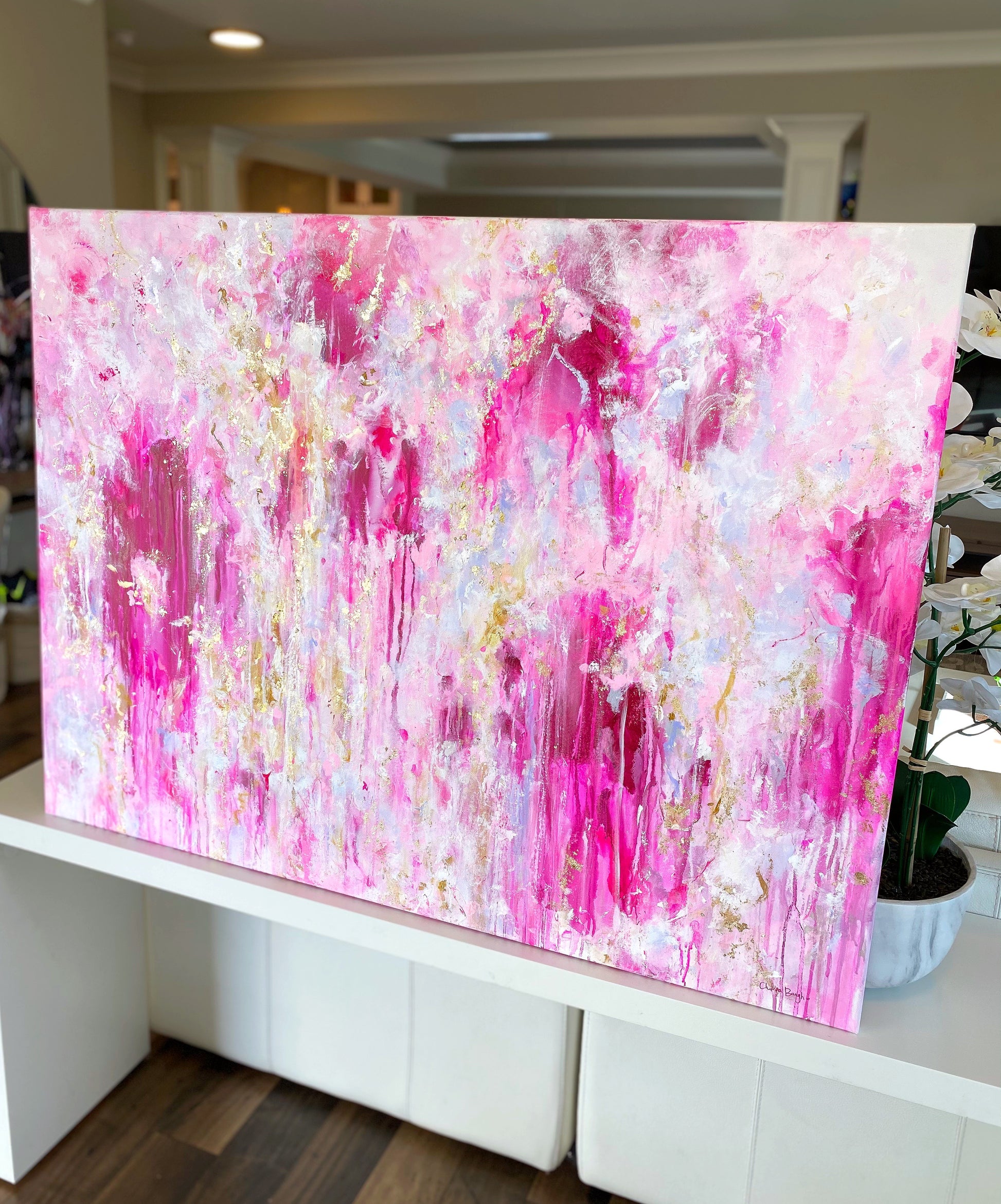 Complete your original Chels Made painting with a gold float frame! Frames are made to order at my favorite local frame shop. Please allow 3 weeks for framing and shipping. If you choose to add on a frame please do so by selecting your frame color on the drop down arrow when adding to your cart.