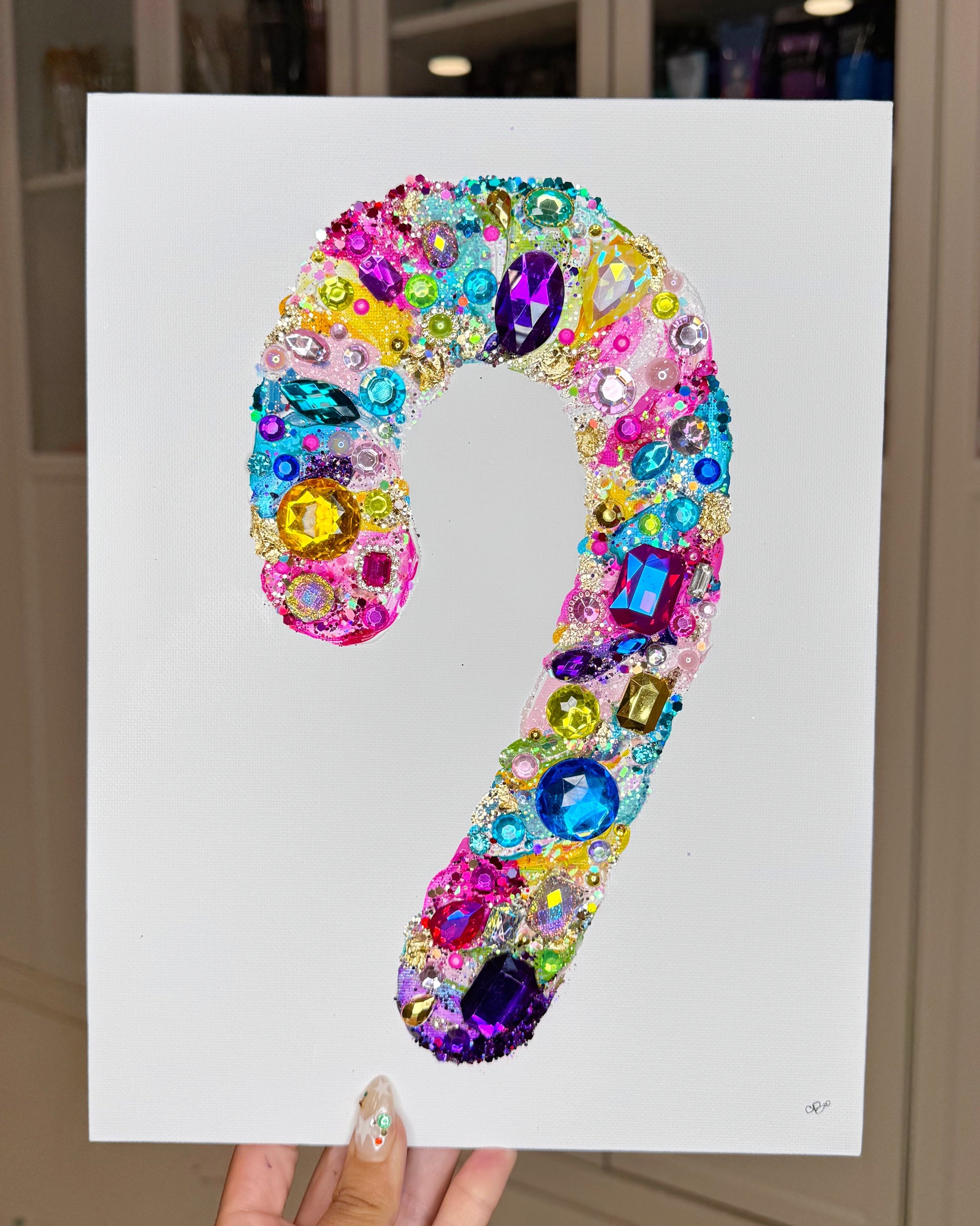 This jeweled candy cane is bursting with sparkle, color, and festive sweetness. Covered in bright gems, pearls, and shimmering details, it catches the light from every angle and adds the perfect pop of Christmas magic. These jeweled pieces go viral on TikTok and Instagram every year!