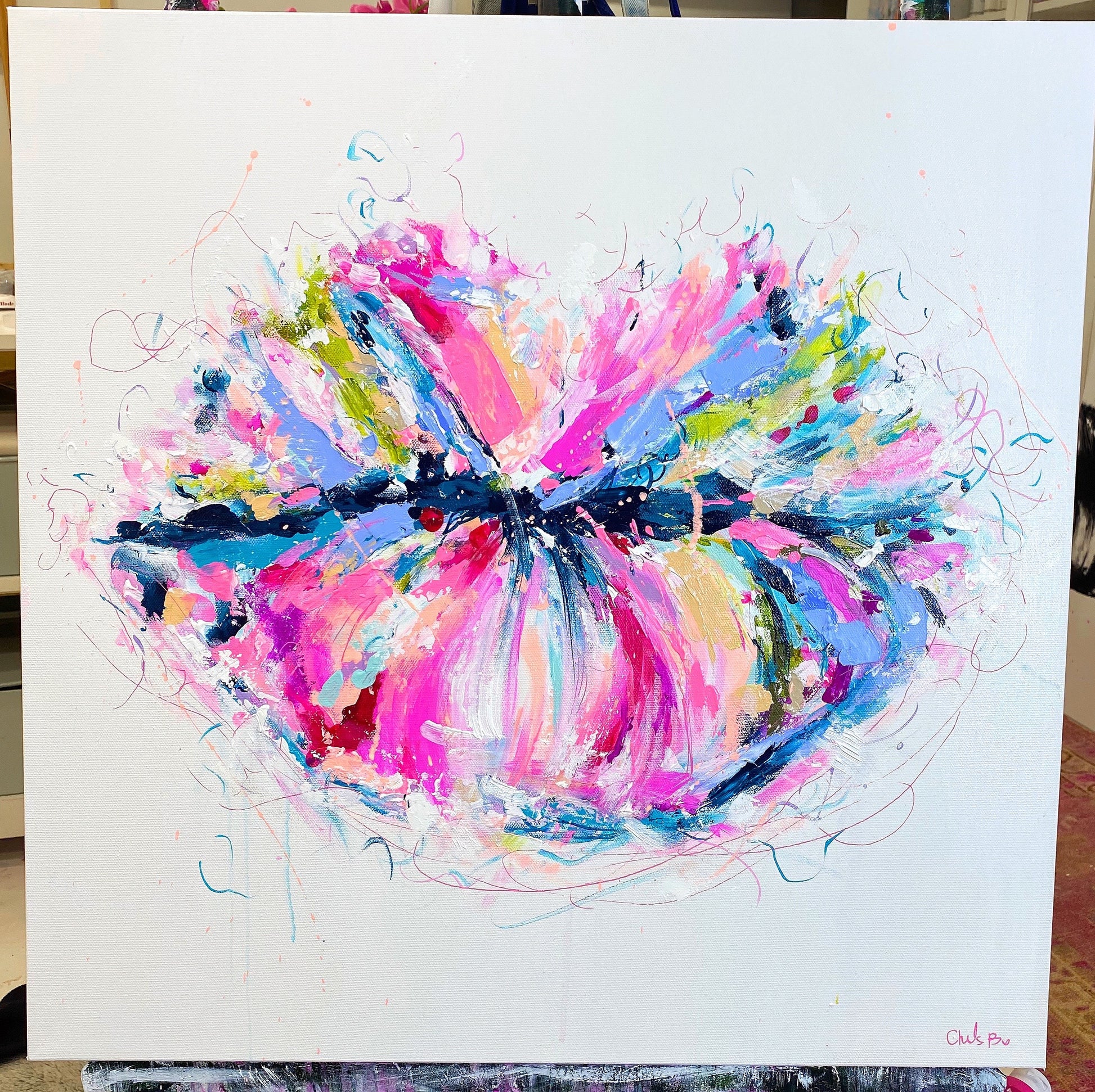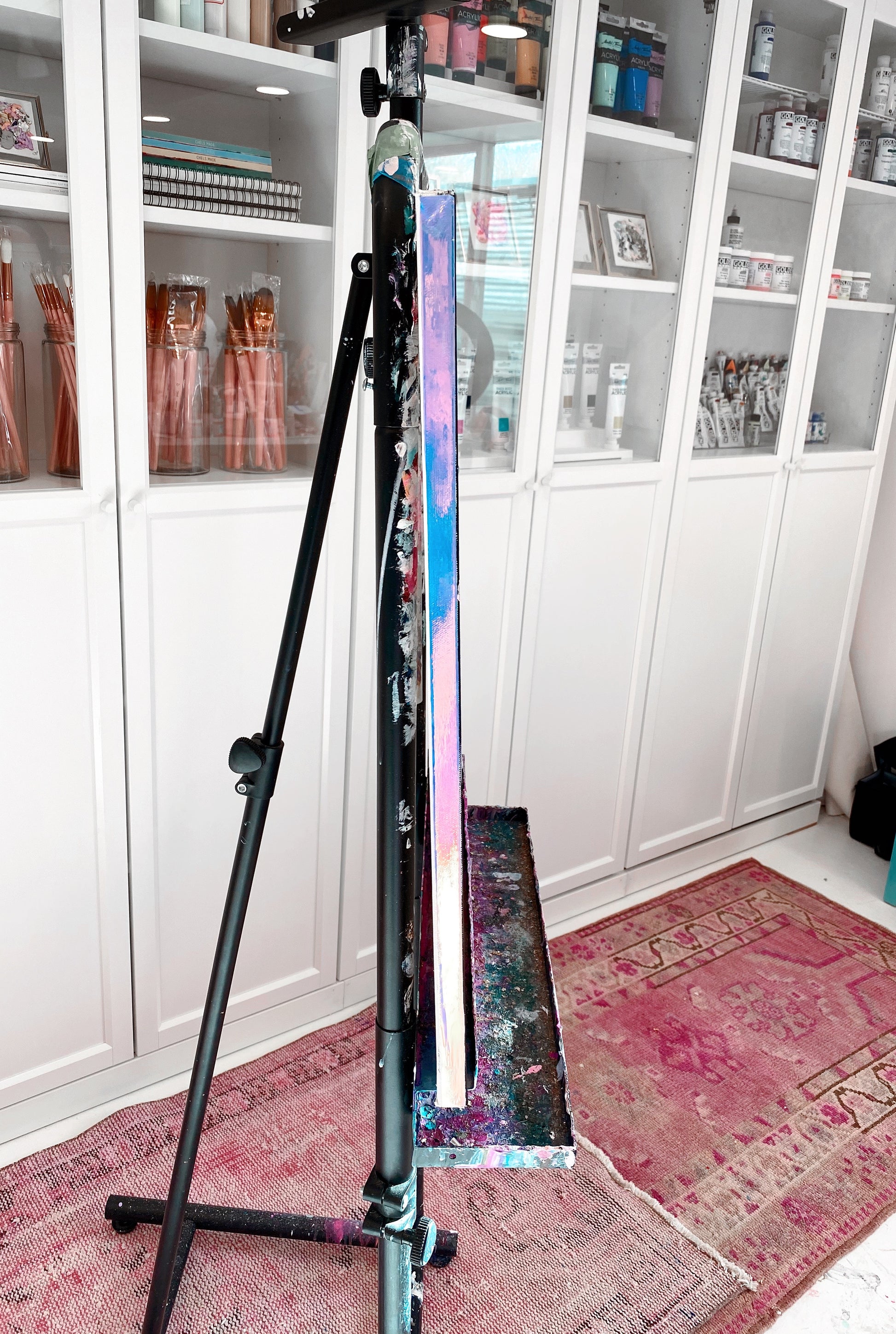 Each side is lined with a pearl holographic vinyl. Hang in an area with natural light or under a light and watch a rainbow of color reflect off the sides of your painting onto your wall!