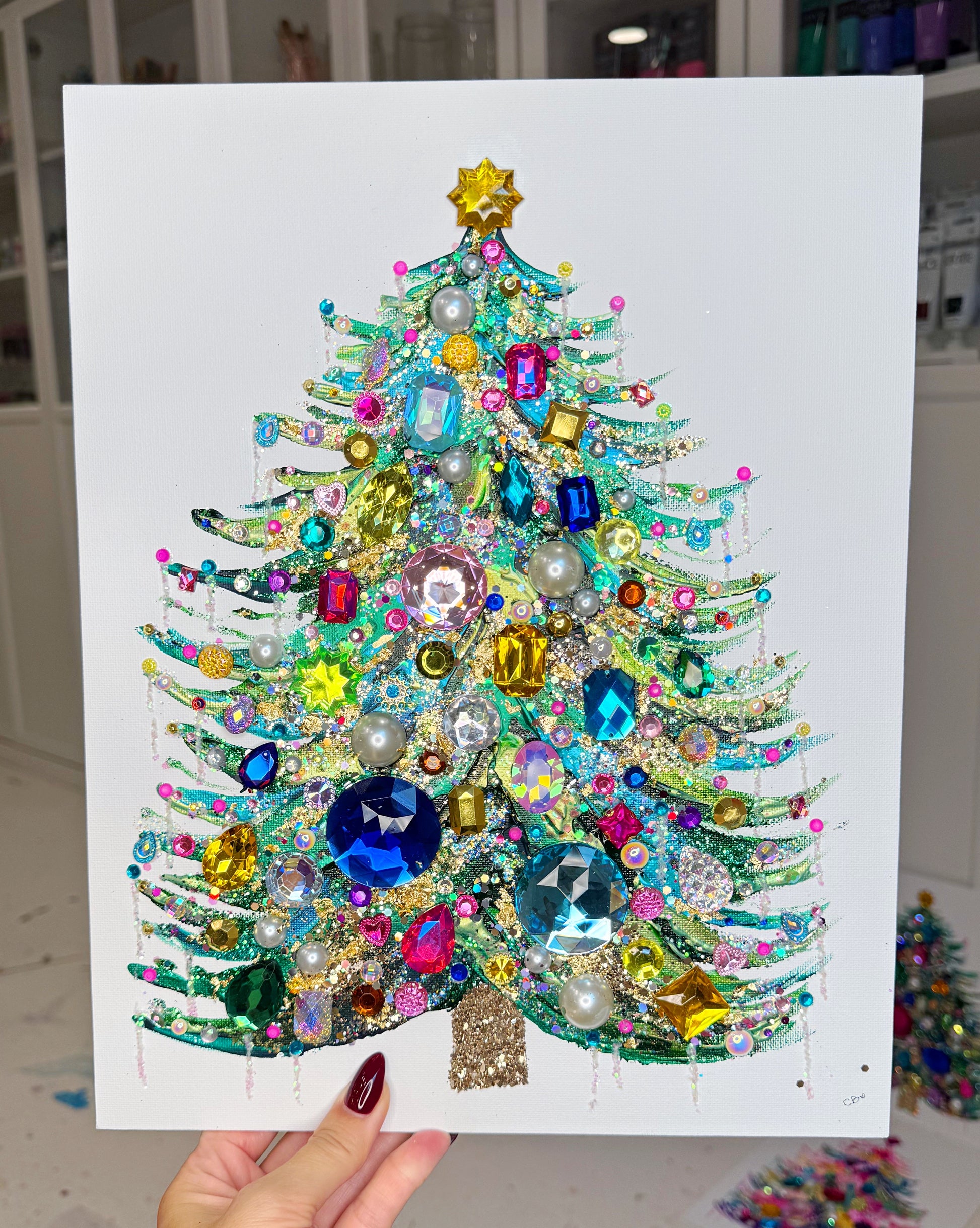 These Christmas Trees go viral every year!! Each one is painted with thick acrylic paint, glitter, jewels and a whole lotta love! I was sure to make them even more bedazzled than they have been in past years! Don’t miss your favorite!!