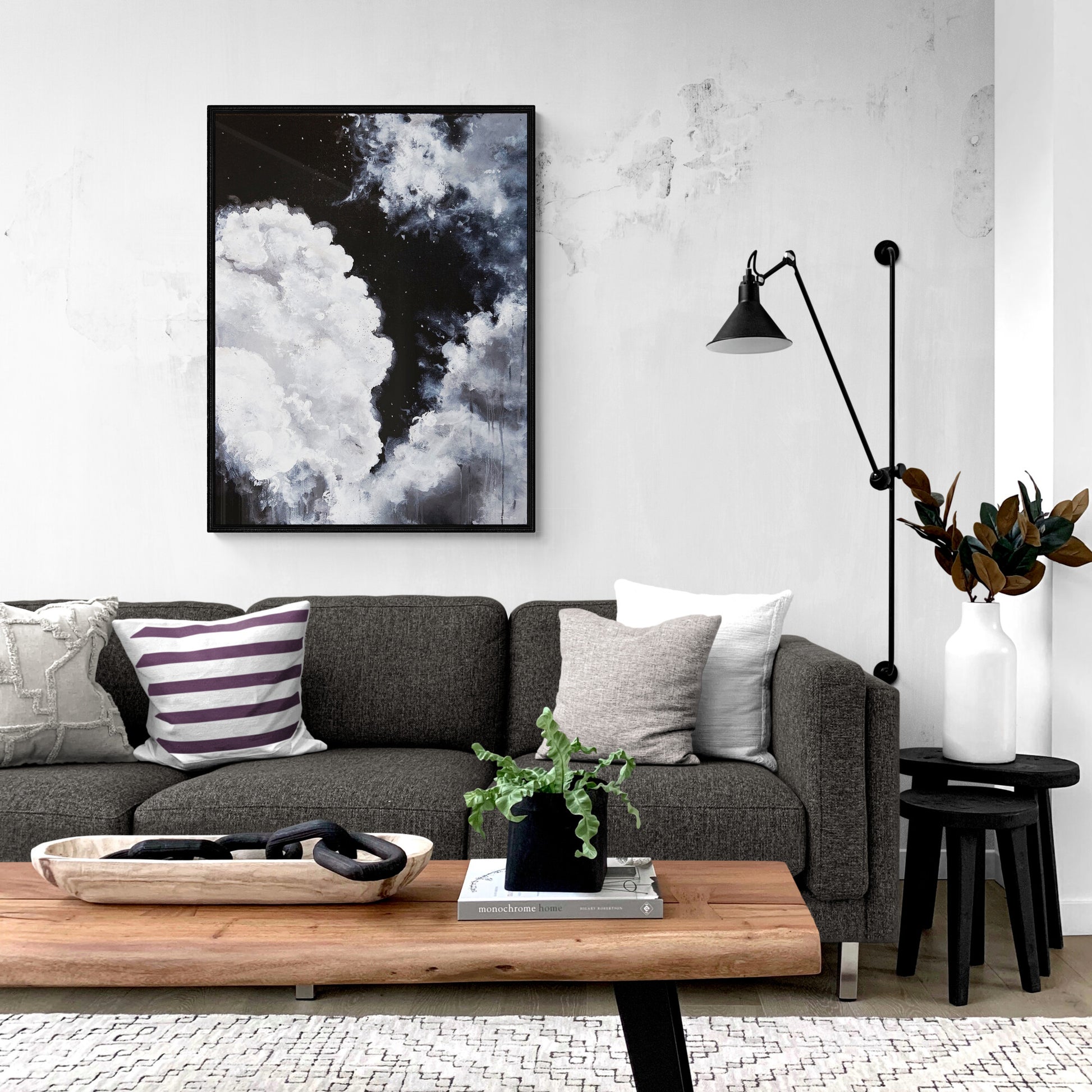 Bring the power of nature to your home with Infinite Storm! This mesmerizing acrylic painting of stormy and majestic clouds is an effortless way to elevate any interior space. Its timeless, simplistic black-and-white color scheme will bring a sense of awe and wonder as you marvel at this stunning piece. Don't miss the opportunity to bring a bit of storming beauty into your living room or office!