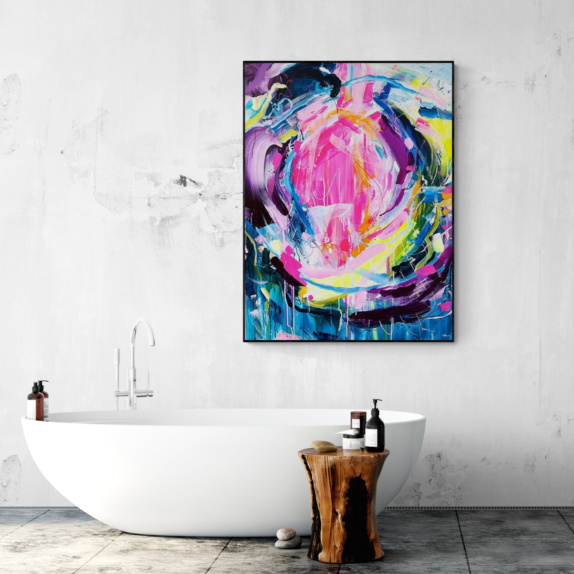 Hailing from the hands of a painter with a knack for the chaotic, Making Space is an explosion of bright, bold color. A hodgepodge of shapes and brushstrokes, it's wildly alive, screaming to be seen. Amidst a sea of minimalist art pieces and abstract paintings that feel too calm and collected, Making Space gives pause and thought.