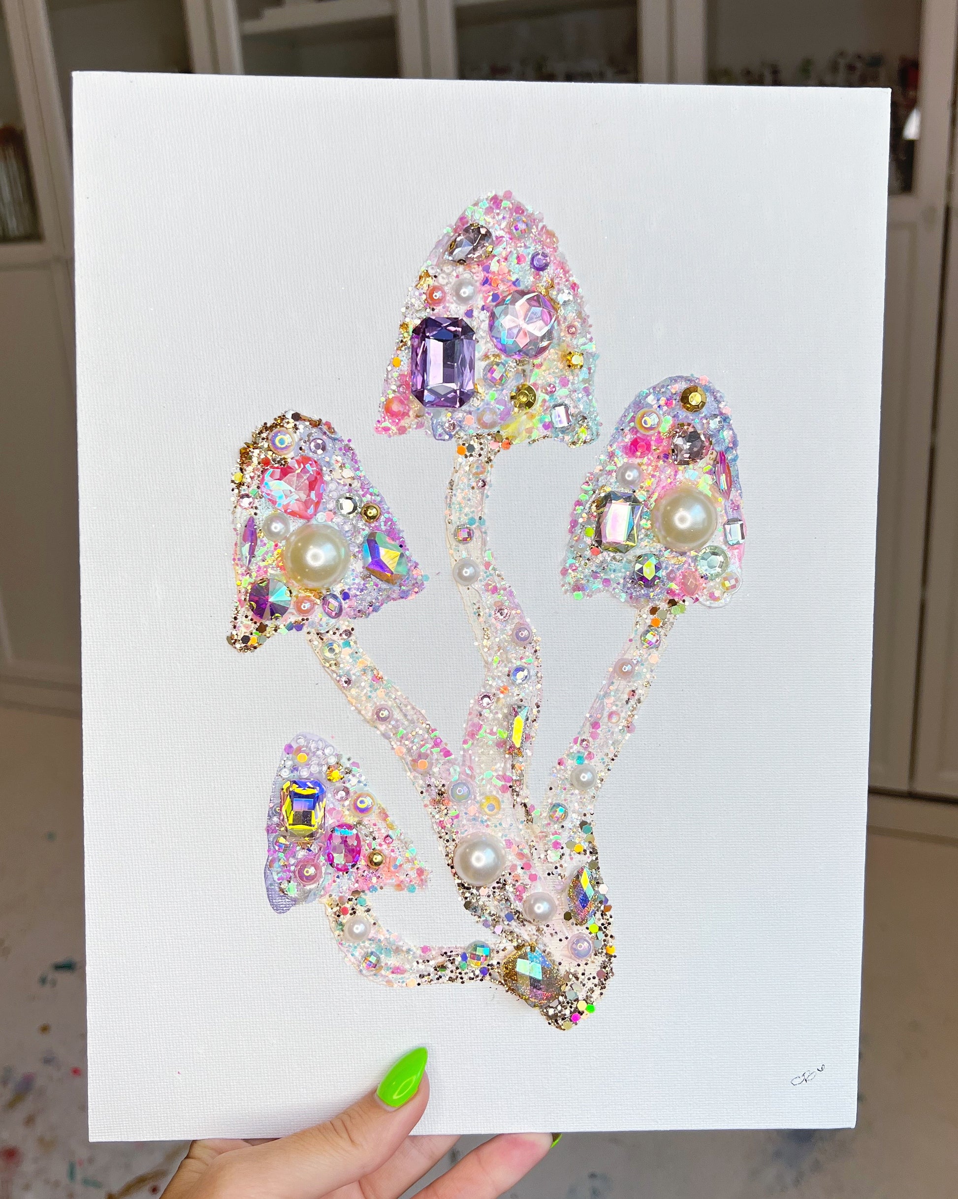 Say hello to our bedazzled one of a kind Mushrooms!! Each one is made with acrylic paint, glitter, jewels and a whole lotta love! Don’t miss your favorite!!