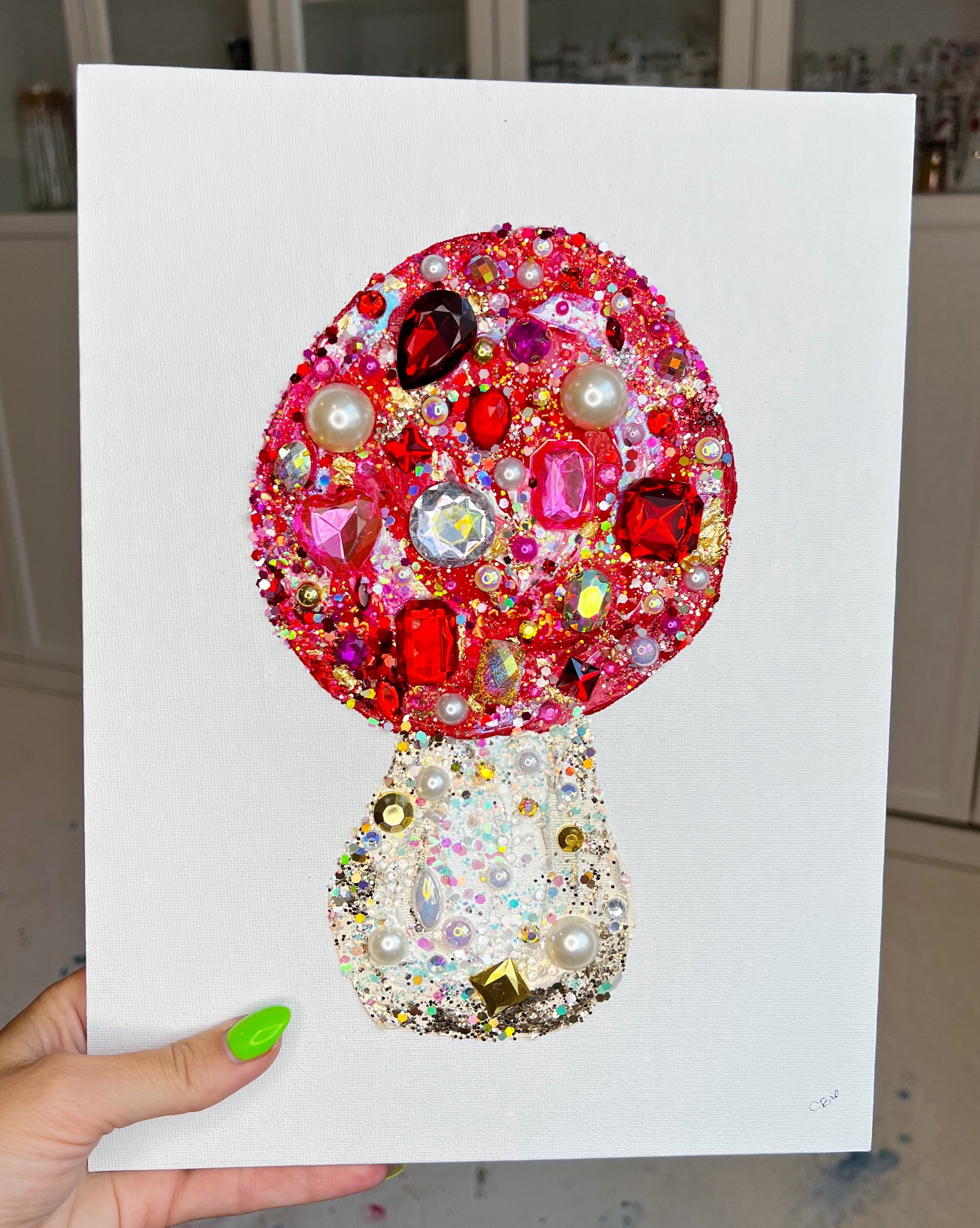 Say hello to our bedazzled one of a kind Mushrooms!! Each one is made with acrylic paint, glitter, jewels and a whole lotta love! Don’t miss your favorite!!